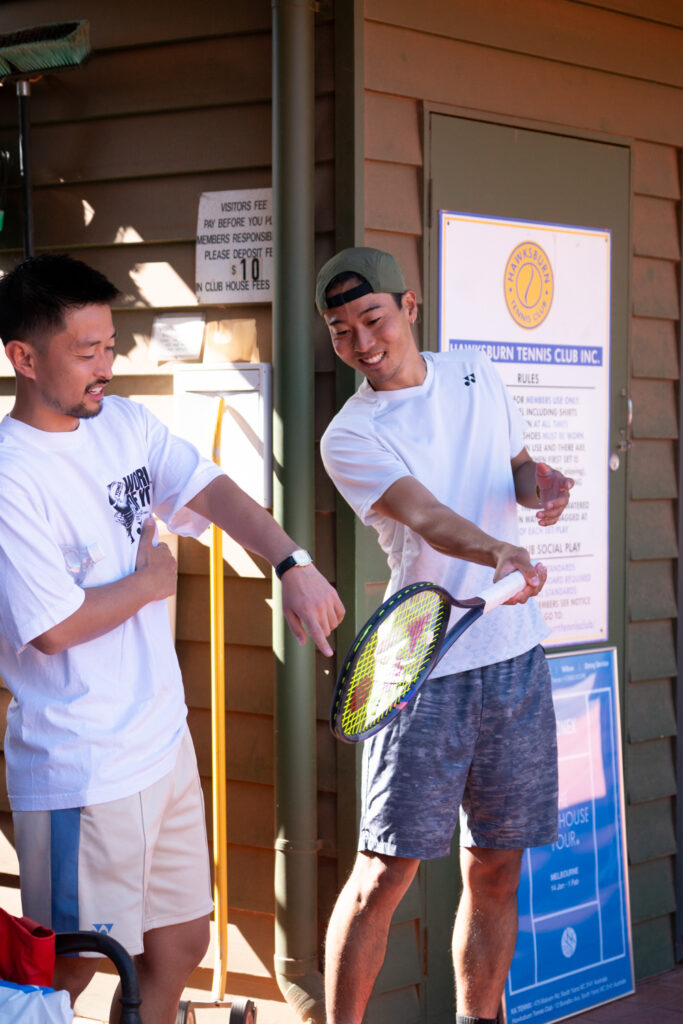 告知を見て来てくれた人、メルボルンで出会った人、そしてこの日初めてラケットを握った人。テニスをきっかけに、また新しい「ご縁」が生まれた。